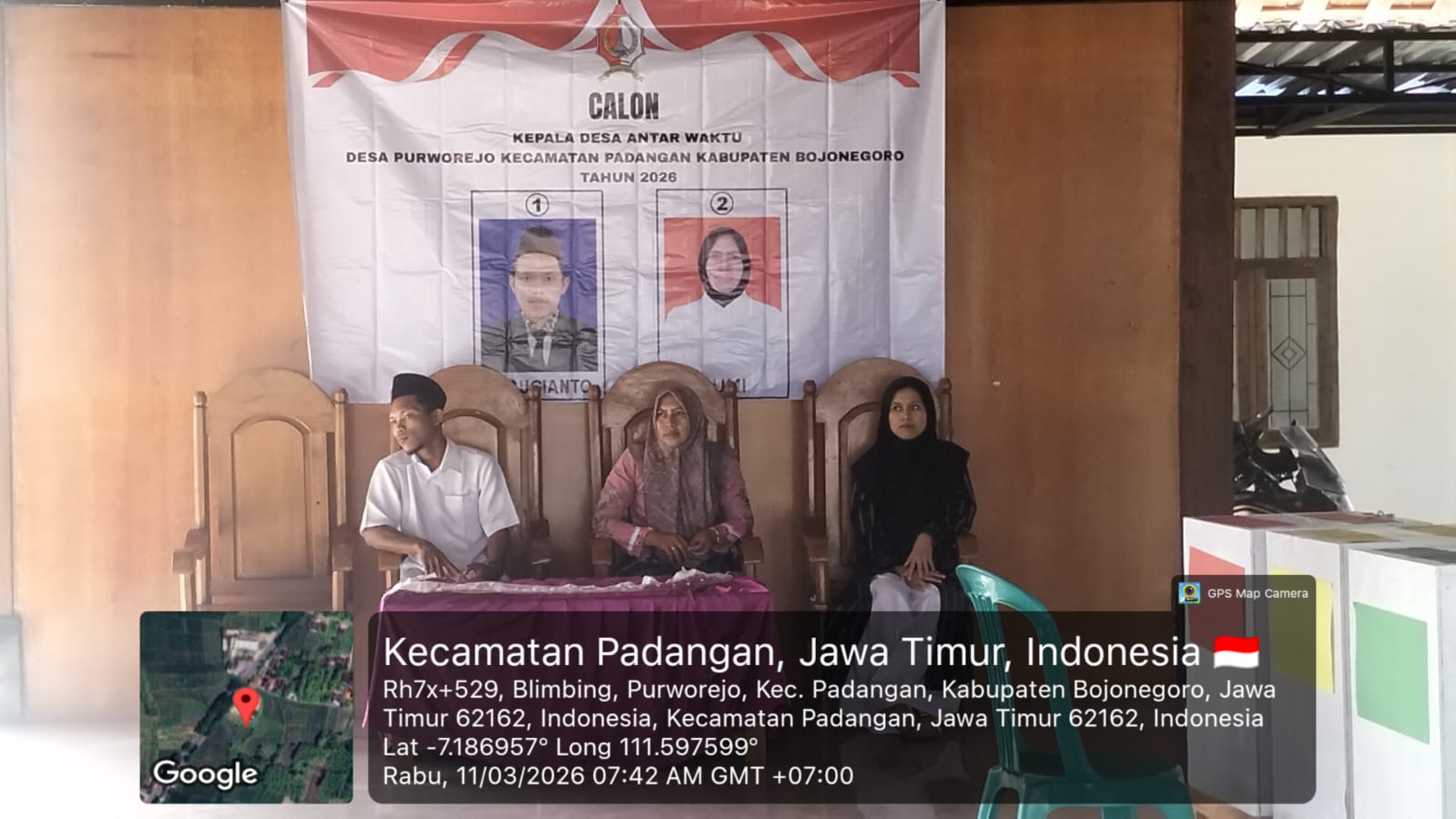 Pelaksanaan Pemilihan Kepala Desa Antar Waktu (PAW) berlangsung dengan tertib dan lancar pada hari Rabu, 11 Maret 2026. Kegiatan dimulai sejak pukul 06.00 WIB dibuka dengan agenda Musyawarah Desa (Musdes) yang dihadiri oleh Badan Permusyawaratan Desa (BPD), para Ketua RT/RW, tokoh masyarakat, serta panitia pelaksanaan Pilkades PAW.
